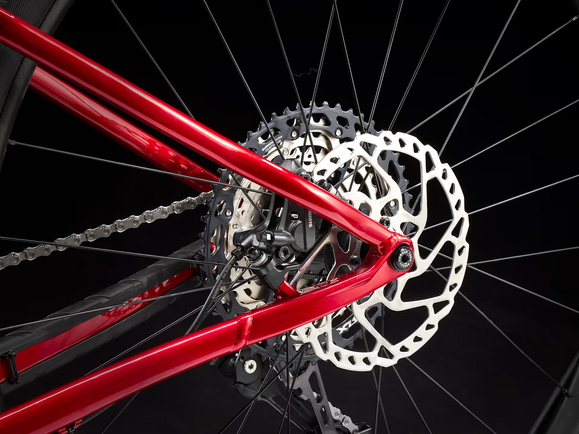 Piasta tylna: Bontrager, aluminium, Rapid Drive 108, bębenek Shimano MicroSpline, Boost148, oś 12 mm